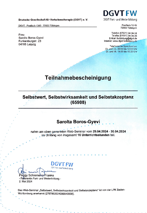 Selbstwert, Selbstwirksamkeit und Selbstakzeptanz - Fortbildung (Frauke Niehues, DGVT FW)