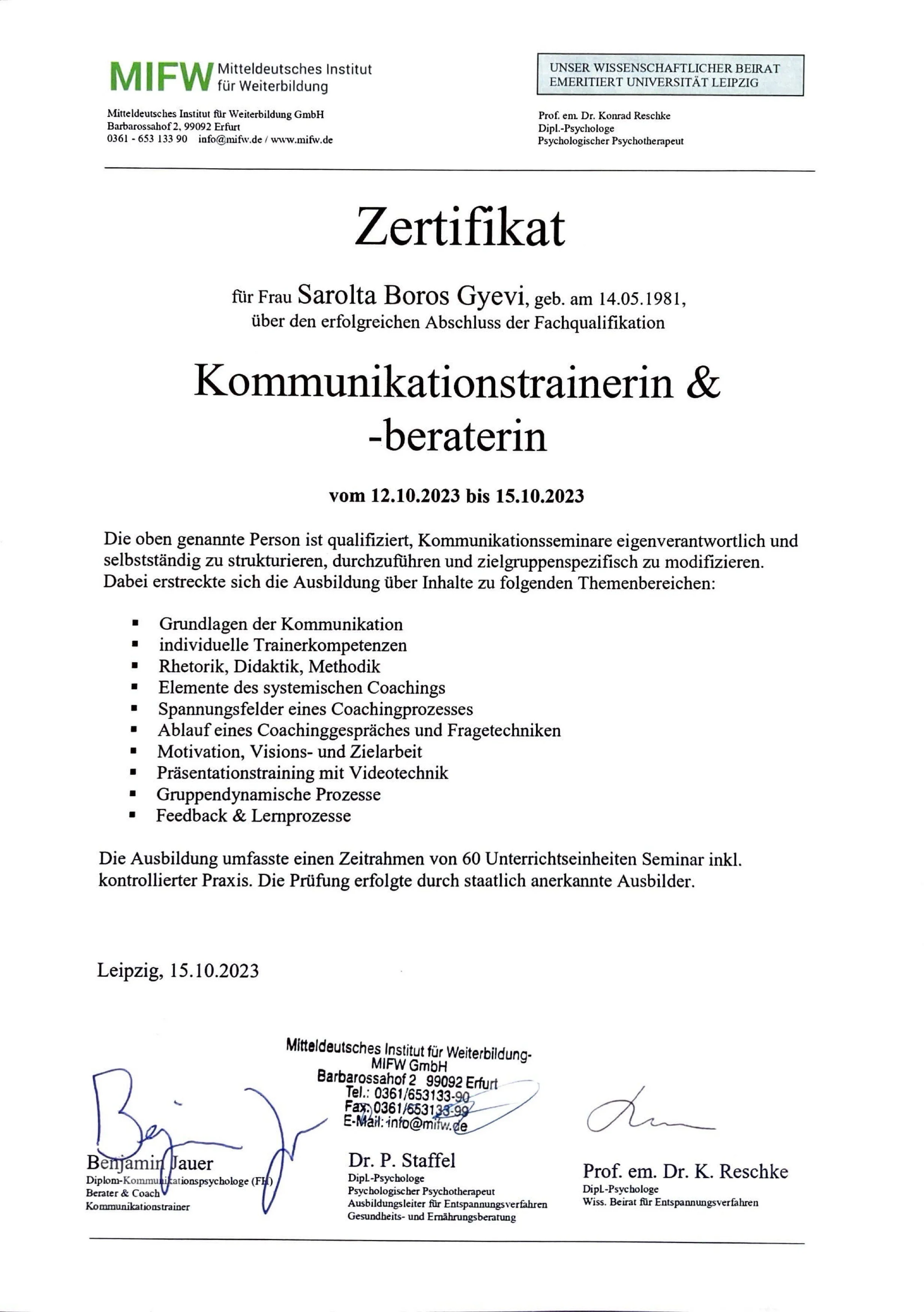 Kommunikationstrainerin Ausbildung (Benjamin Jauer; MIFW)
