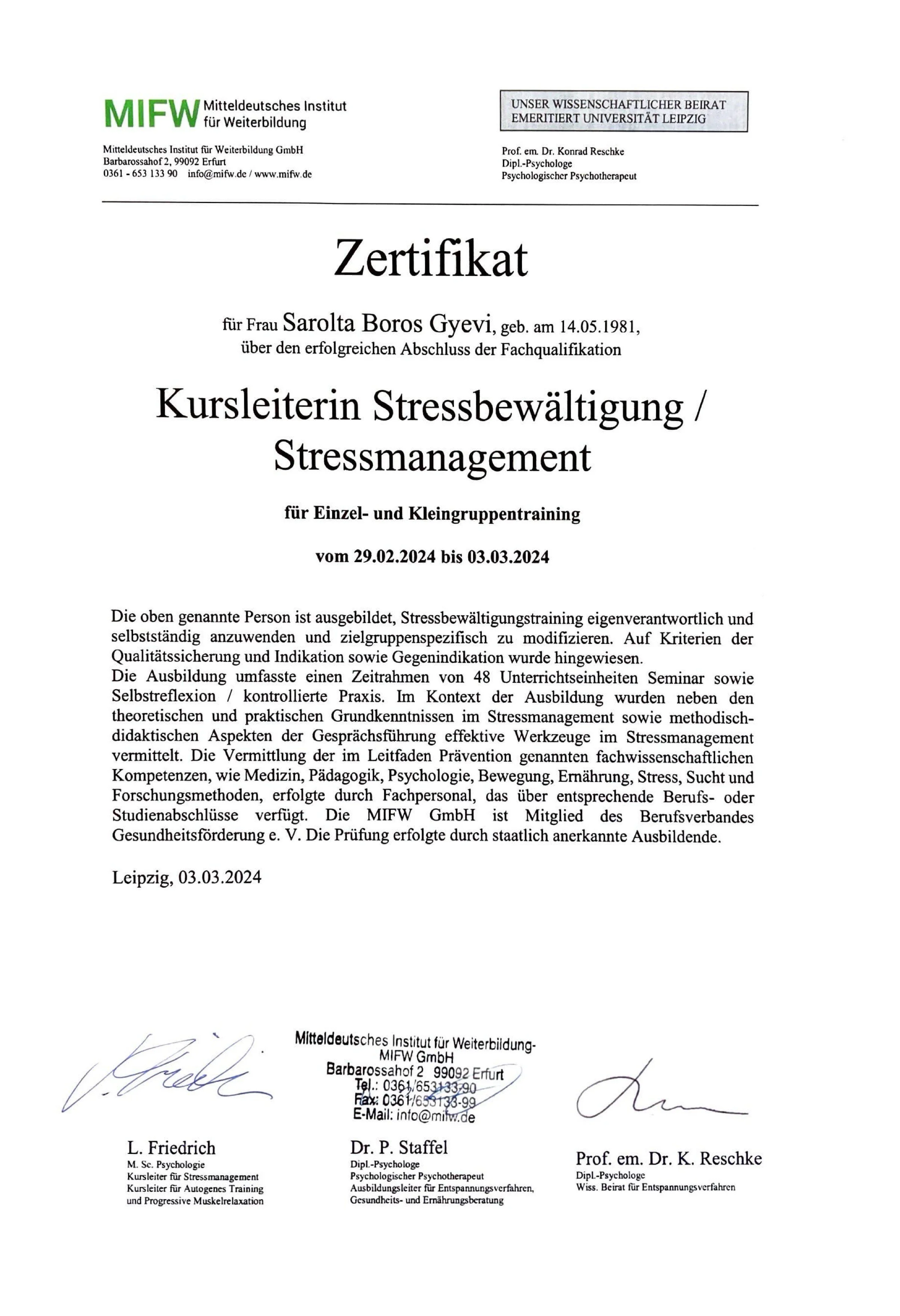 Stressmanagement Trainerin Ausbildung (Lutz Friedrich; MIFW)